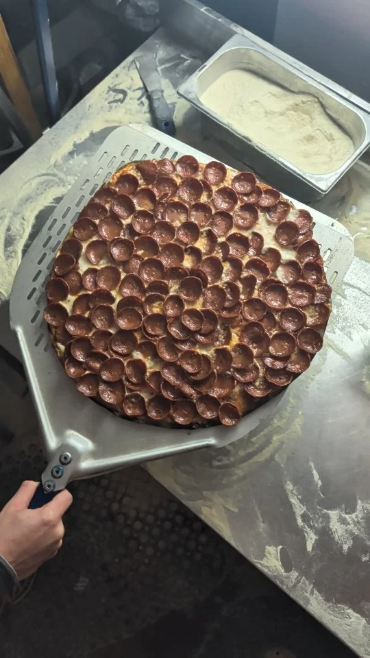 We do slices, squares, and rounds. Each day we decide what goes on them! The menu always changes, but it consistently features the absolute best locally sourced seasonal ingredients and exciting flavour profiles.